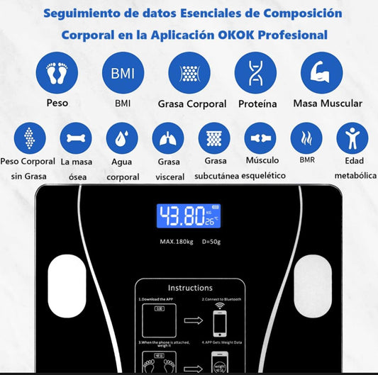 Bascula Digital Corporal hasta 180 kg Conectividad con App